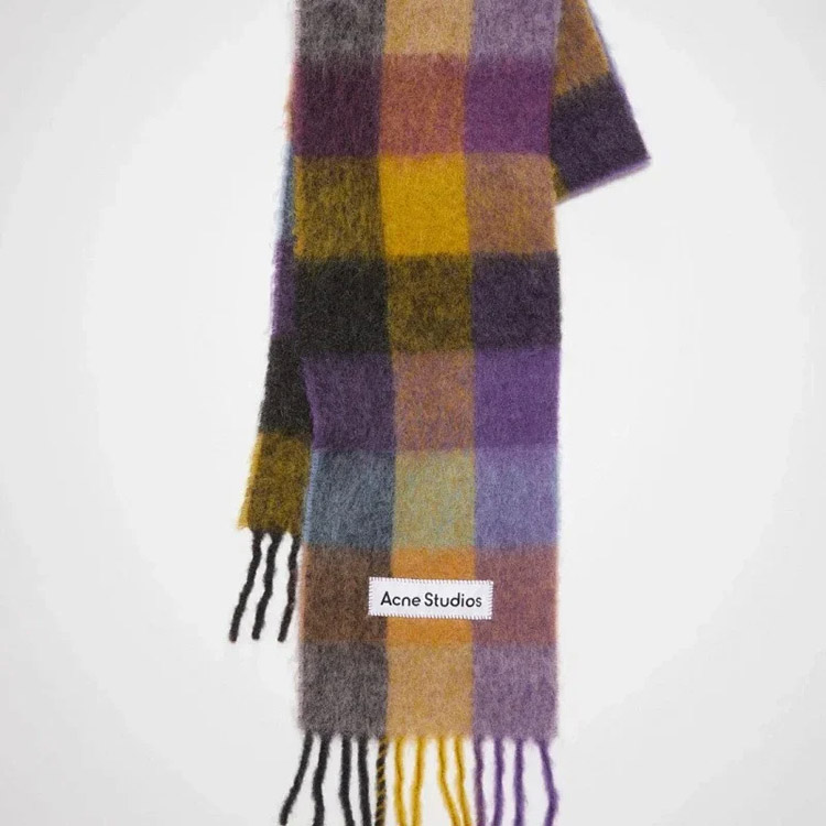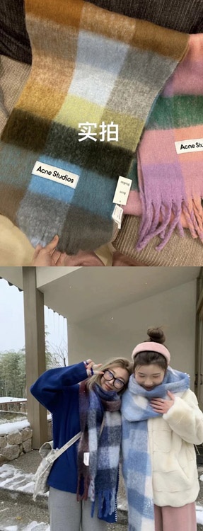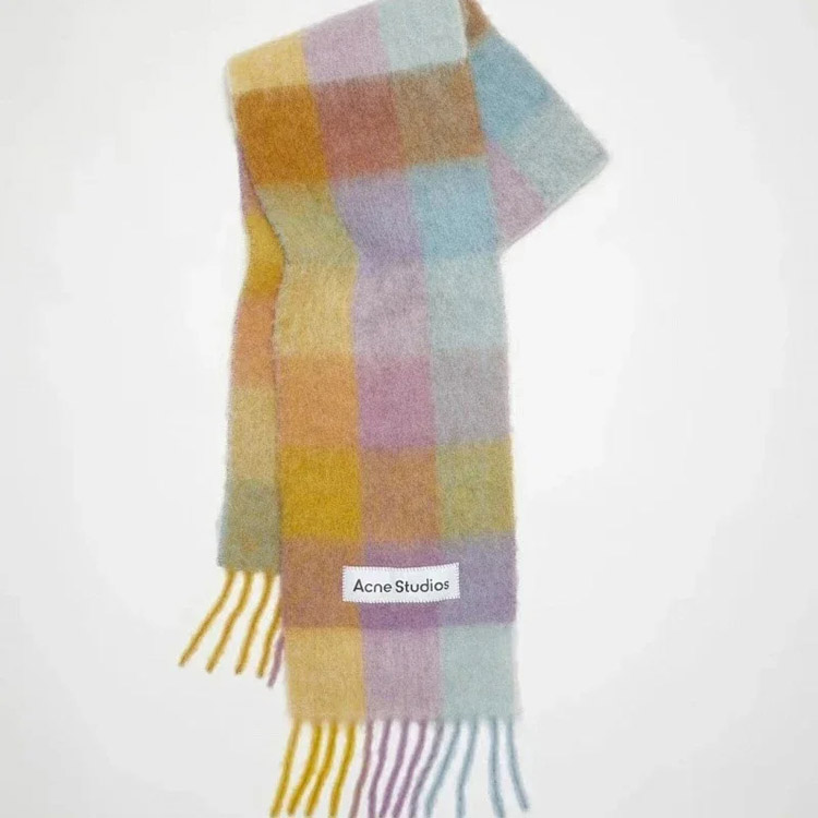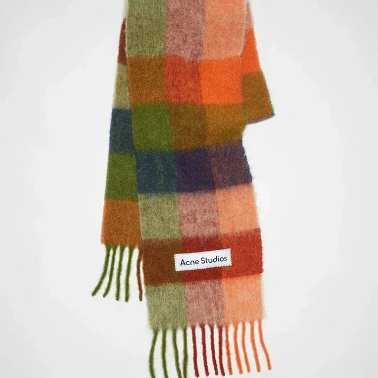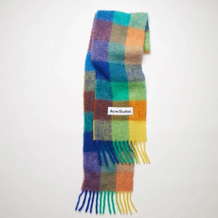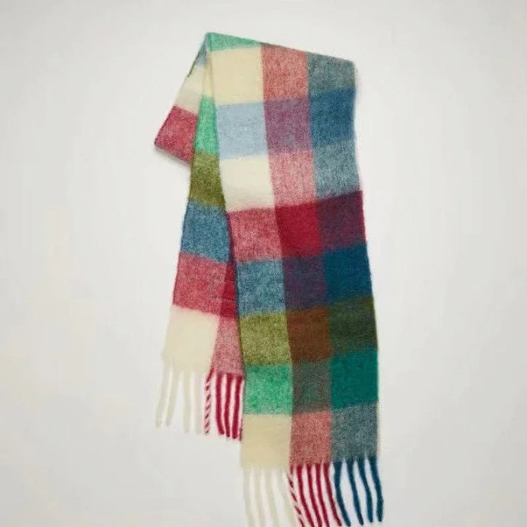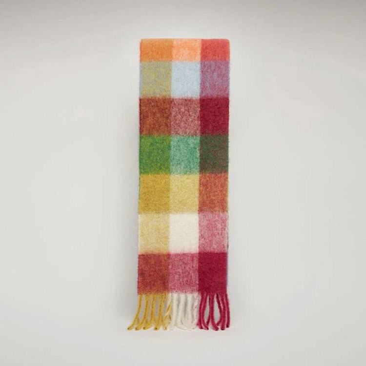 Home > ACNE rainbow plaid scarf with tassels and color-blocked AC shawl-4981