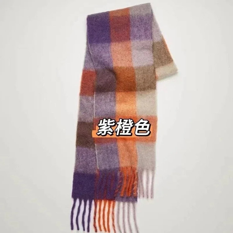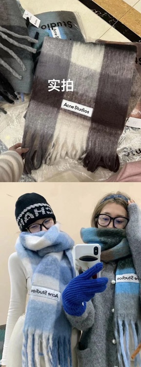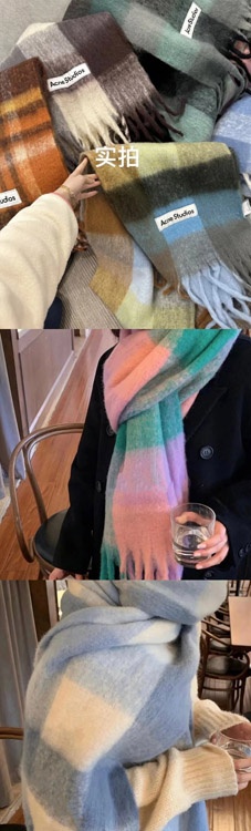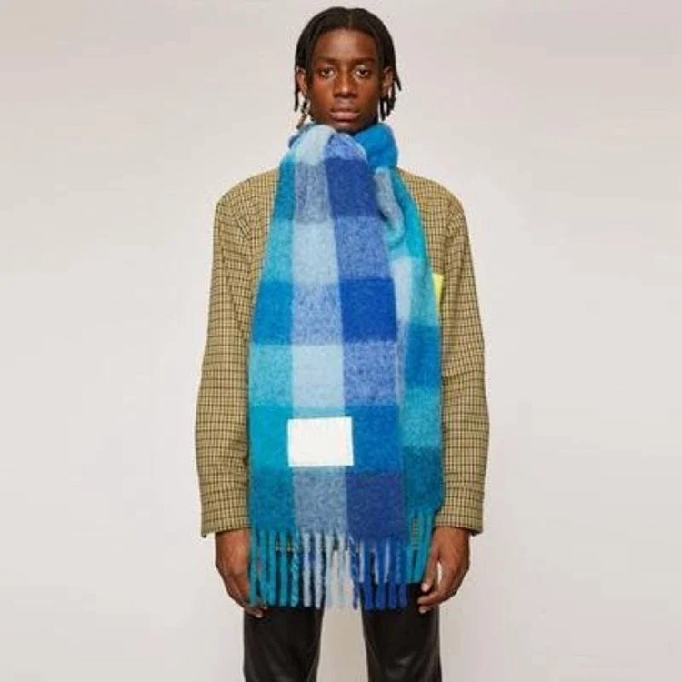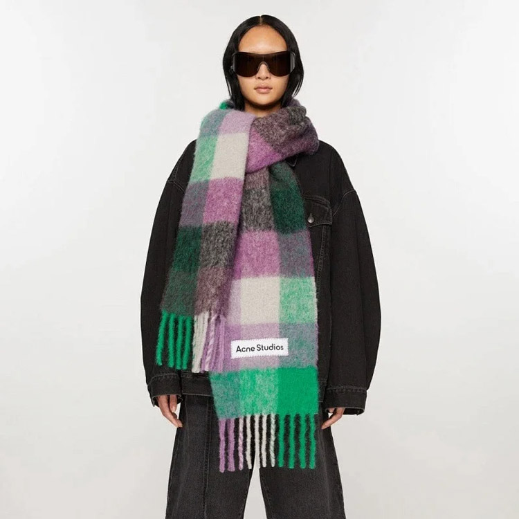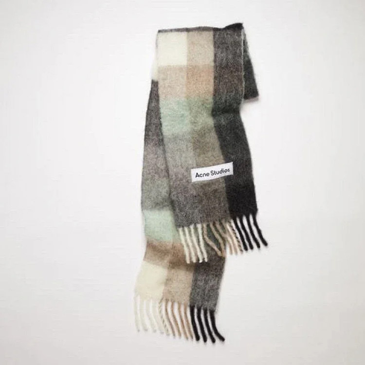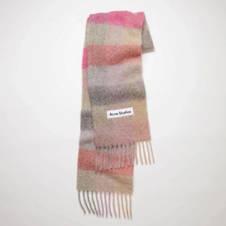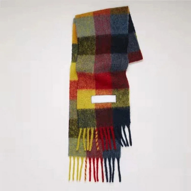 Home > ACNE rainbow plaid scarf with tassels and color-blocked AC shawl-4981