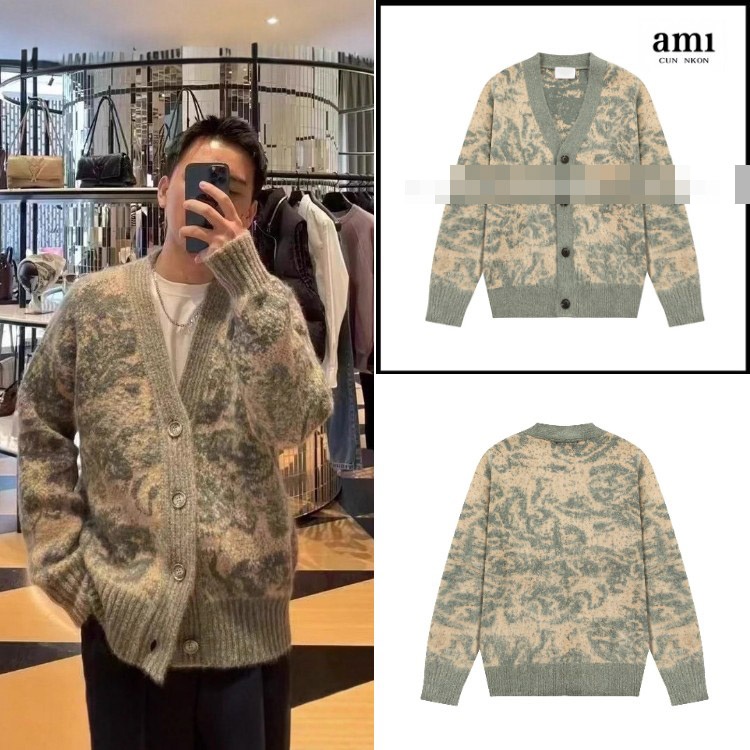 AMIPARIS Floral Jacquard Alpaca Wool Cardigan Sweater-6369