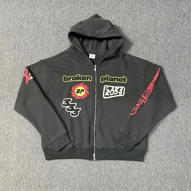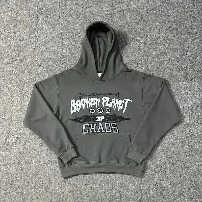 Broken Planet American style retro foam printing hooded sweatshirt-2506