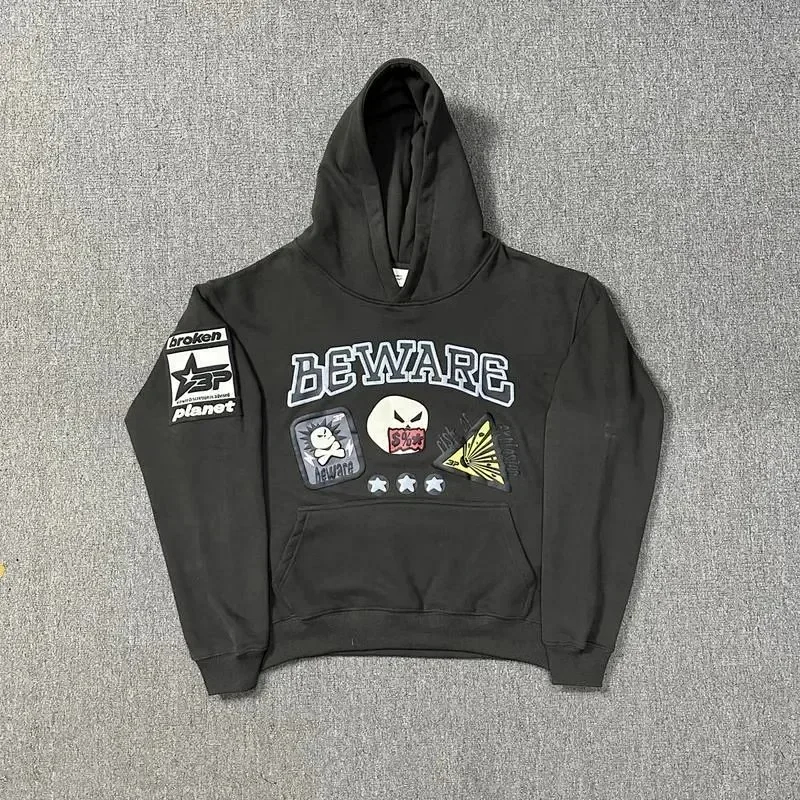 Home > Broken Planet American style retro foam printing hooded sweatshirt-2506