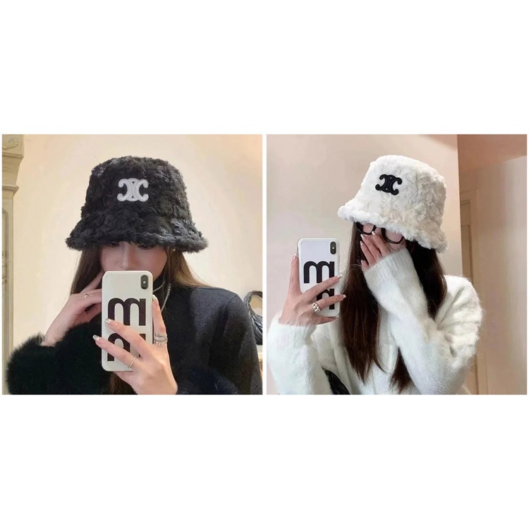 Celine warm and windproof fisherman's hat with lamb fleece-4943