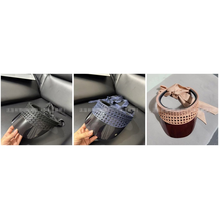 Dior new openwork woven cannage pattern ribbon sun hat-5859