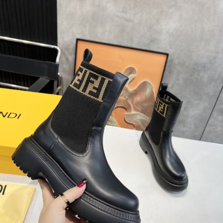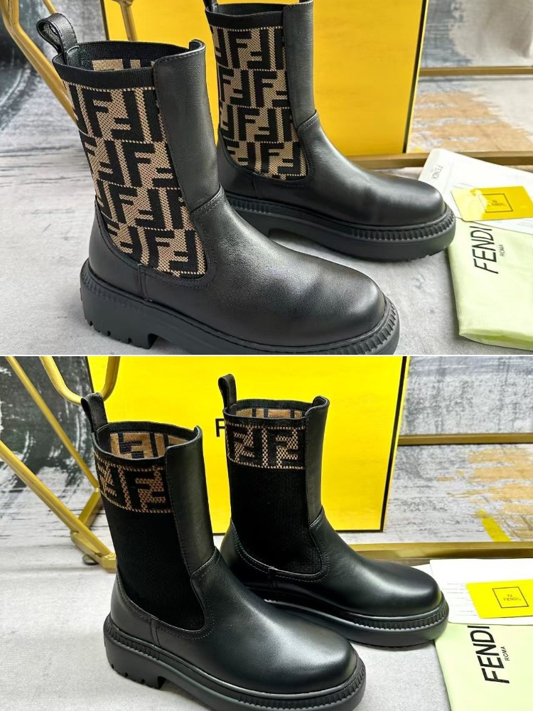 Fendi mid-calf round-toe embroidered letter combat boots-5767