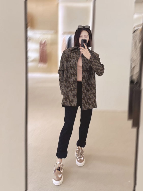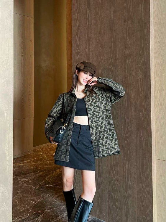 Home > Fendi new jacquard letter collar patchwork fitted jacket-5362