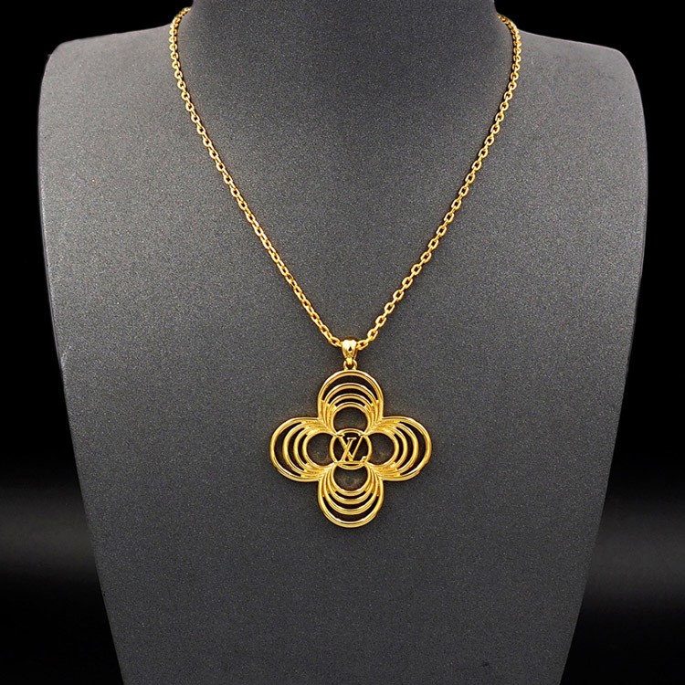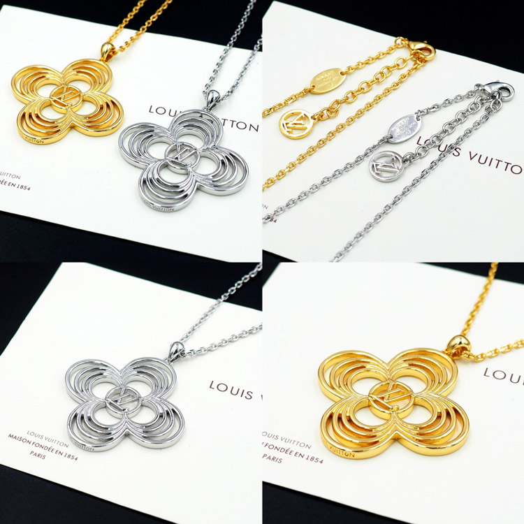 Home > Louis Vuitton LV Floral Round Flower Hollow Metal Wire Outline Necklace-3571
