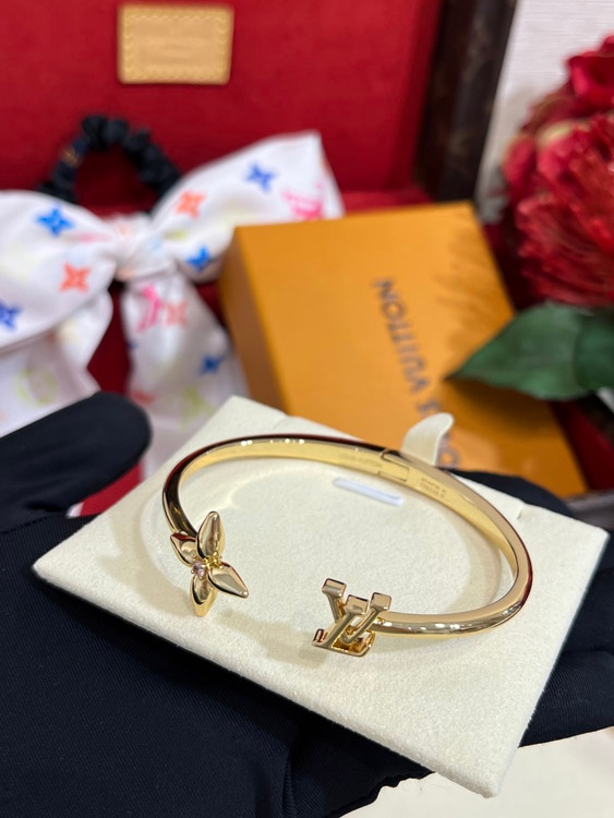Louis Vuitton LV Rose Quartz Floral Letter Gold Open Bracelet-3720