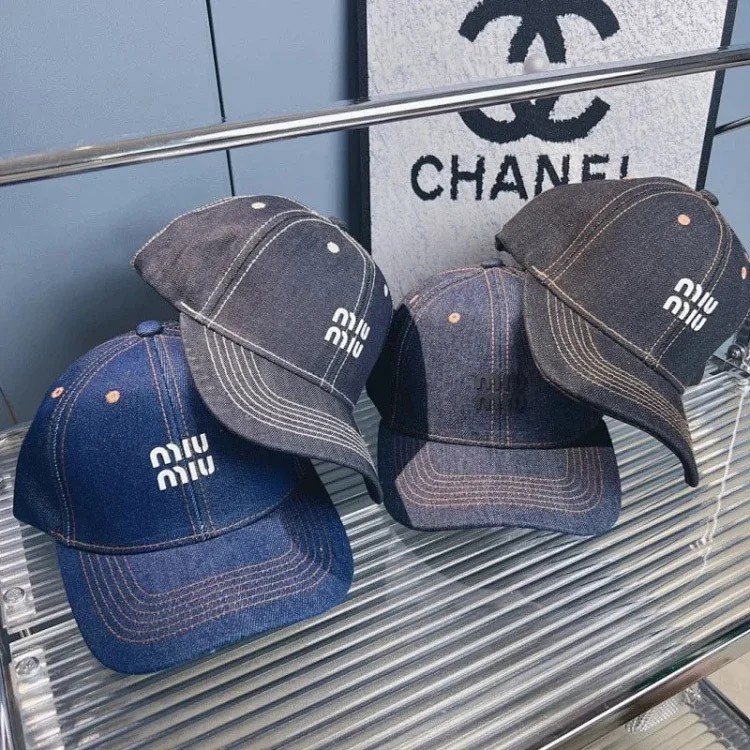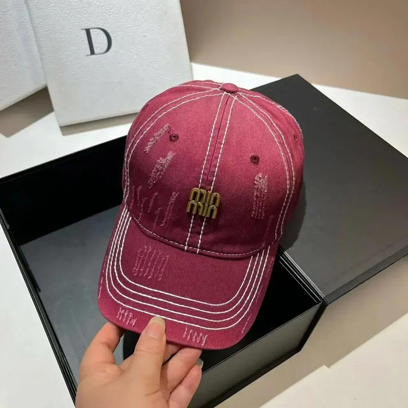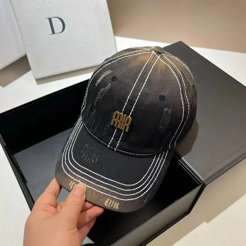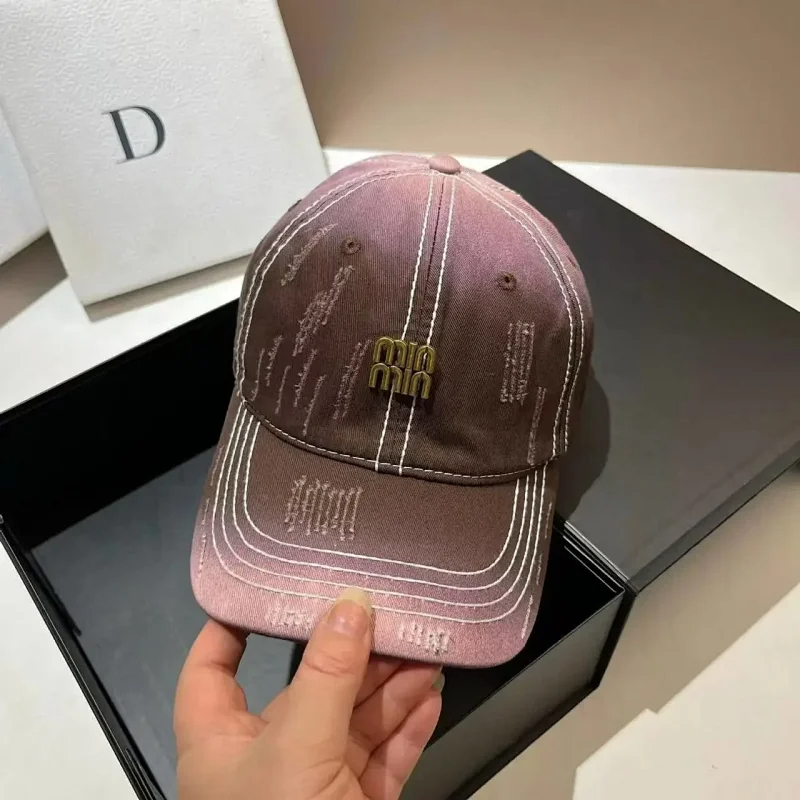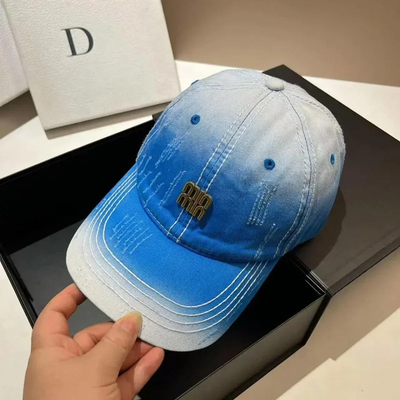Miu Miu Distressed soft top denim cotton sun protection baseball cap-2728