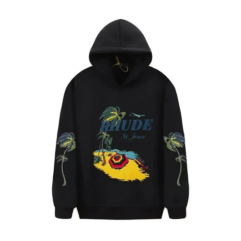 RHUDE new love coconut tree beach hoodie popular sweater-4413