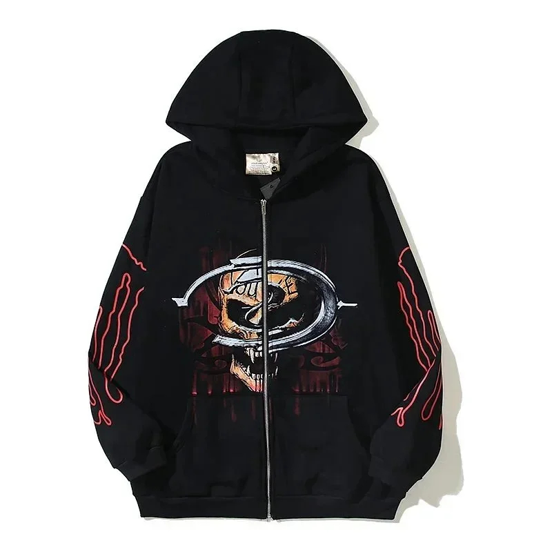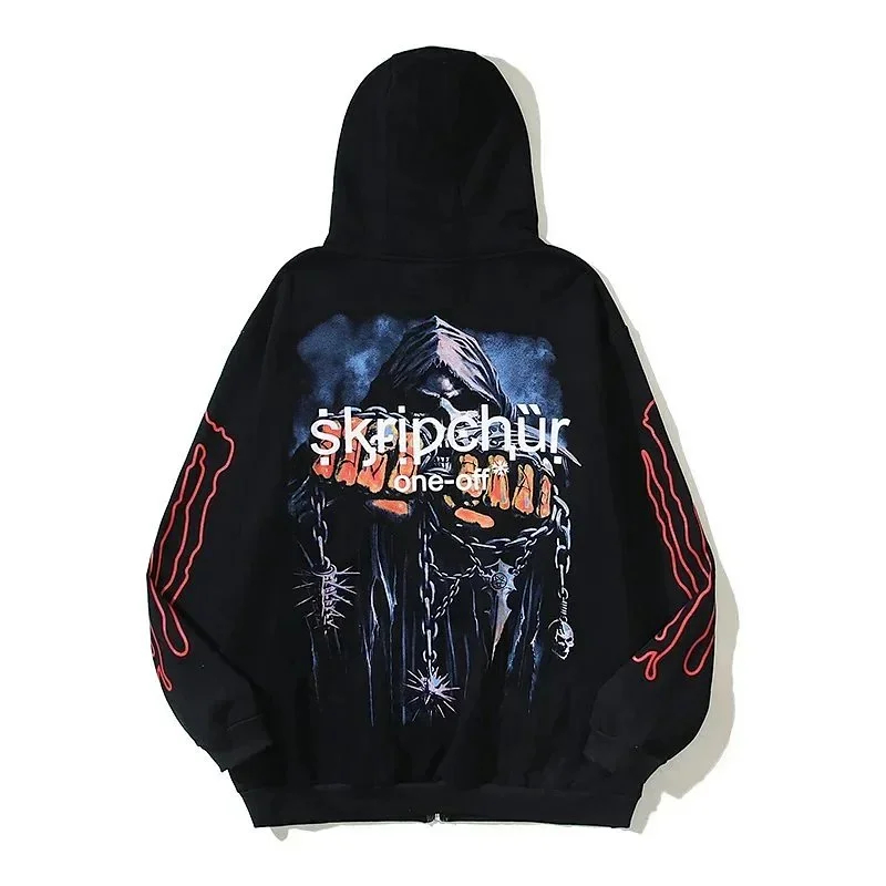 Rhude Retro Dark Series Skull Zipper Jacket Sweatshirt-2529