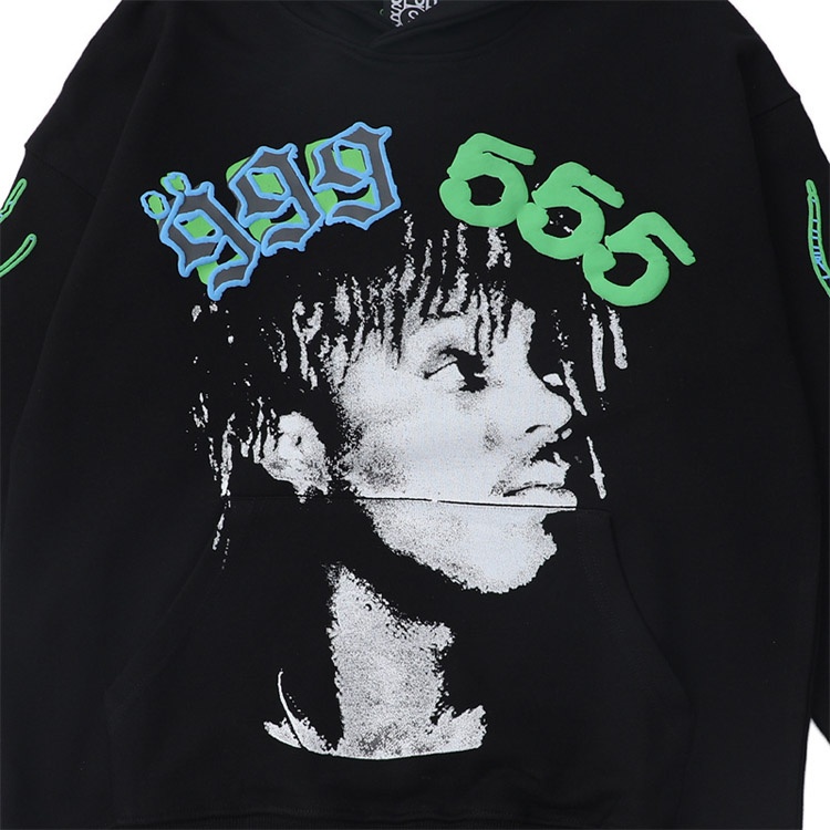 Sp5de Foam Print Loose Hooded Sweatshirt-4595