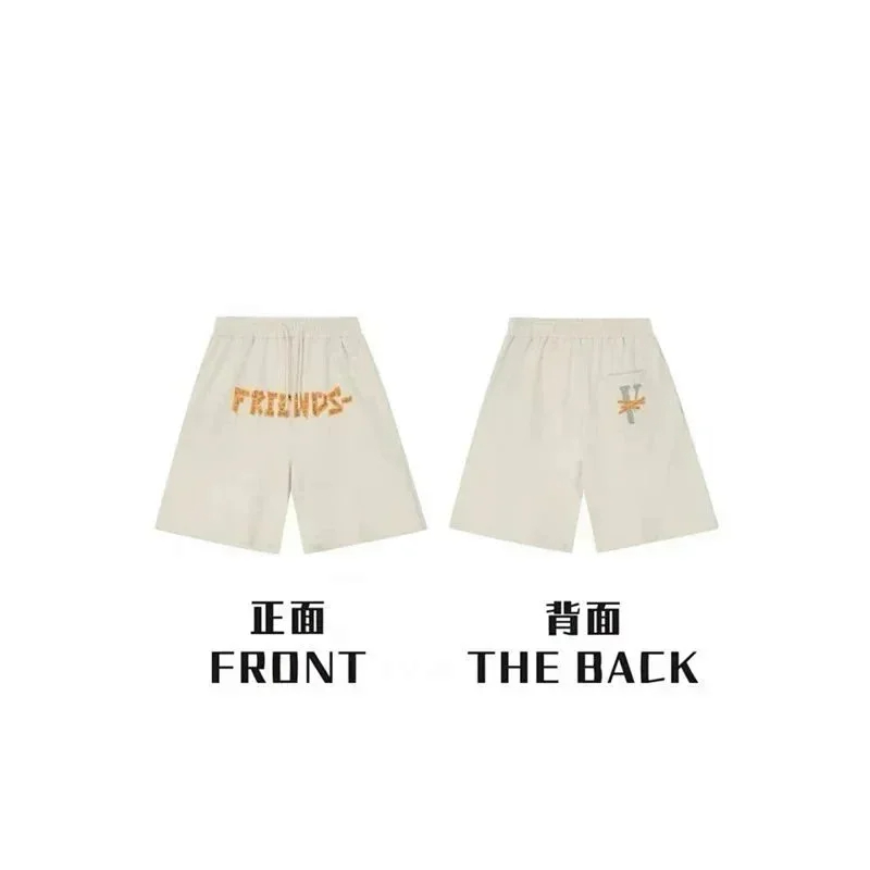 Veron Jerry Big V Letter Print Cotton Terry Casual Shorts-2490