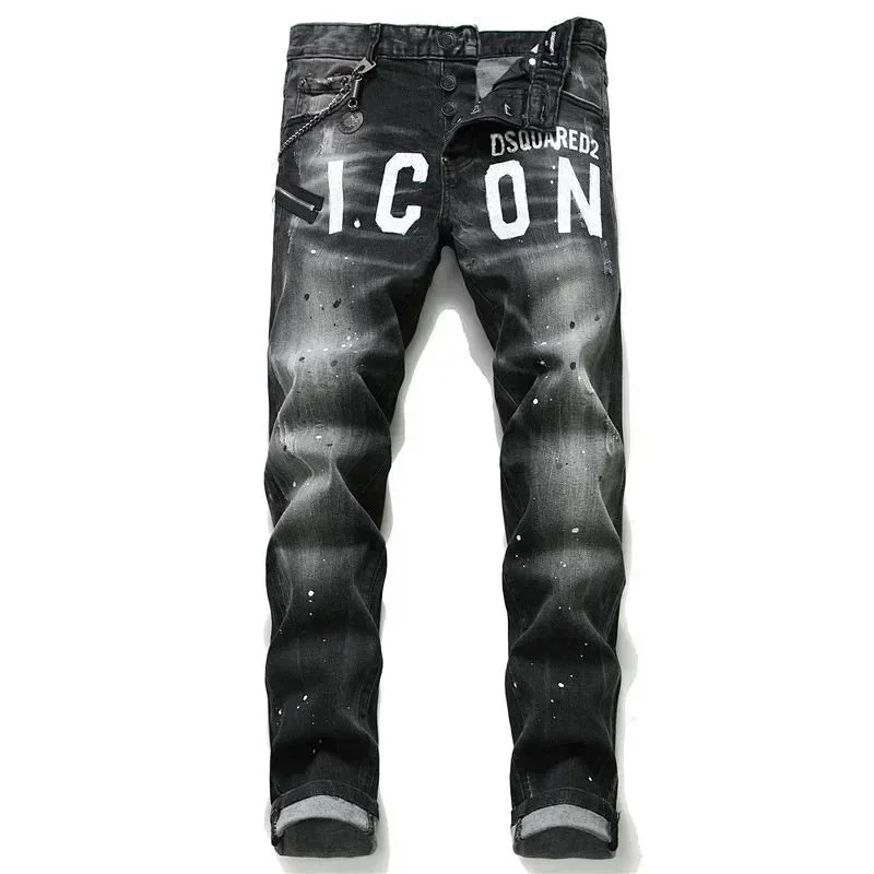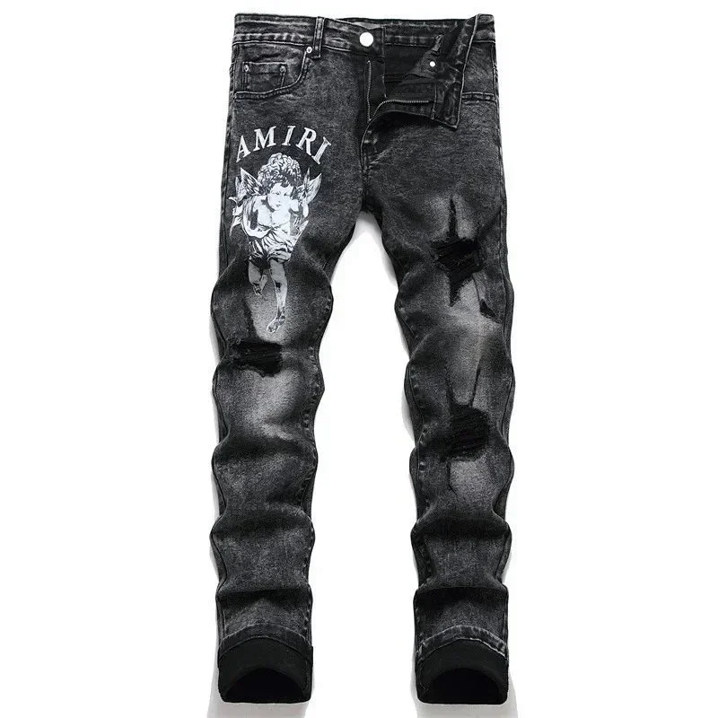 Home > AMIRI new foreign trade style fashion blue ripped patch embroidery elastic mid-waist slim-fit men's jeans (5 styles)-2432