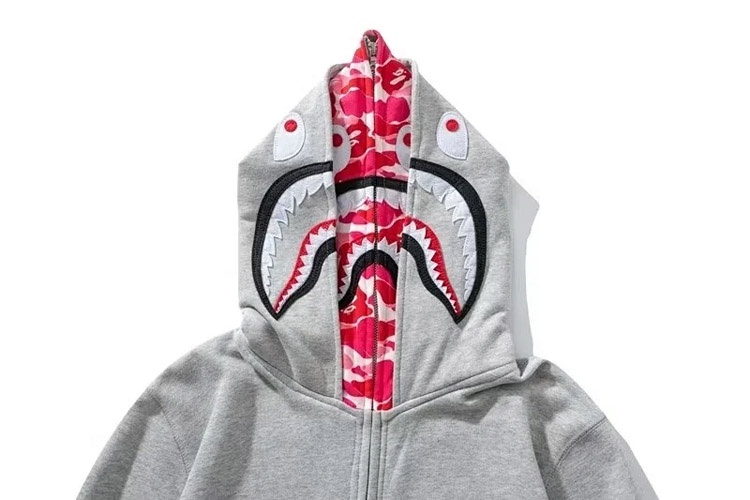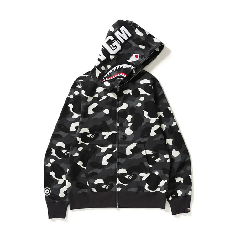 BAPE colorblock fluorescent shark series hooded pullover sweatshirt jacket-4244
