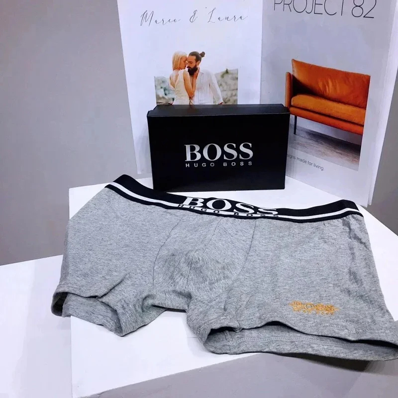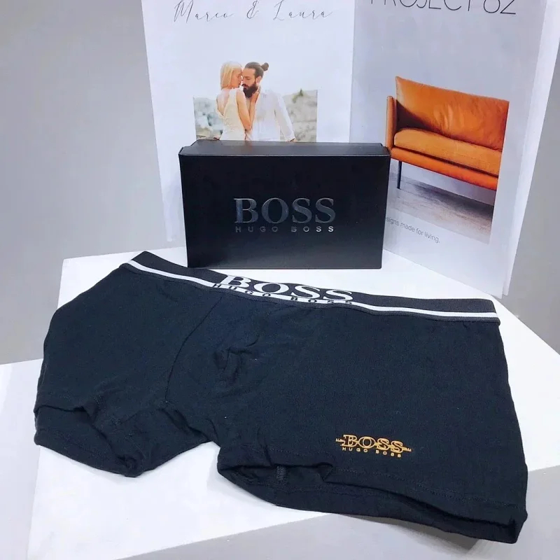 Home > Boss Men's stylish solid color logo embroidered breathable briefs boxer briefs (mens 3pcs)-2392