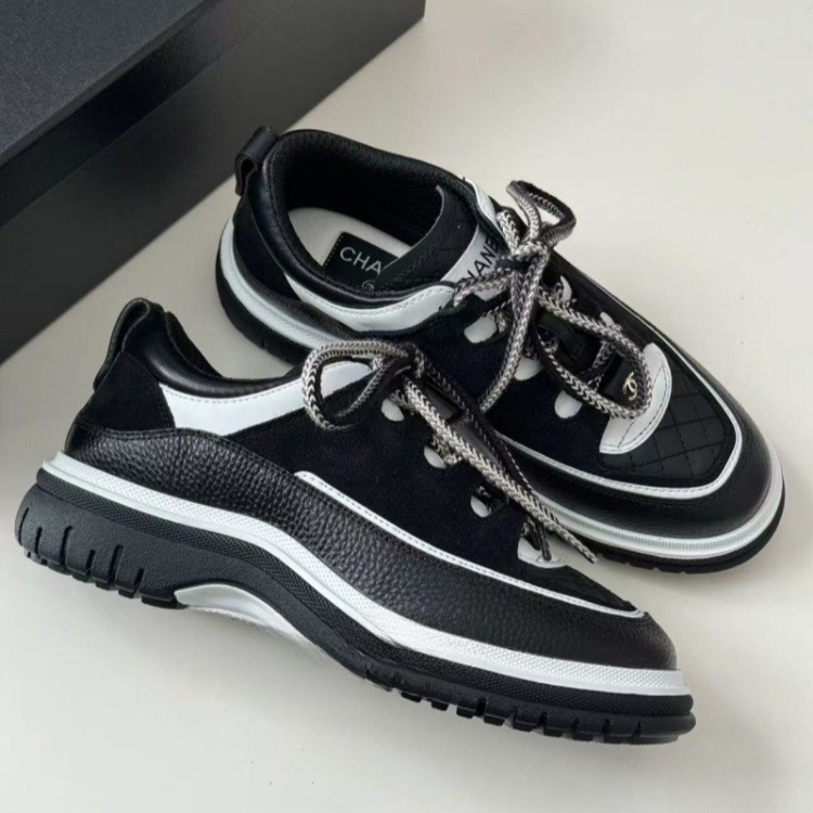 Chanel new platform panda-style color-blocked quilted dad sneakers-5702