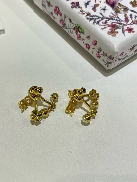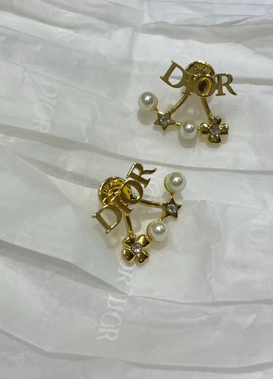 Dior gold star pearl double ball earrings-4017
