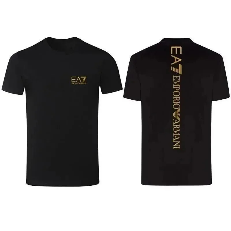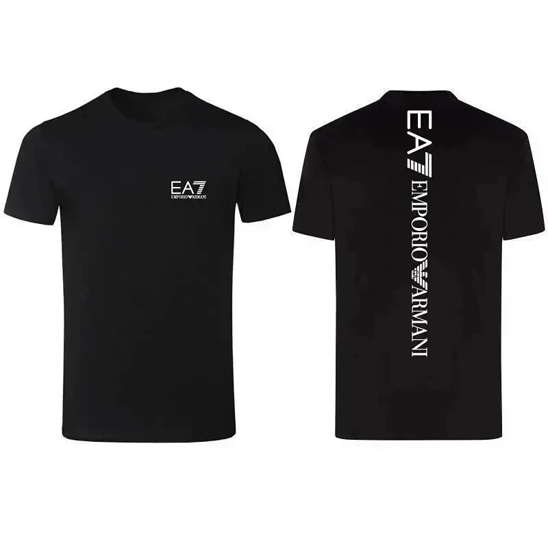 Home > EMPORIO ARMANI EA7 Lettering Logo Solid Color Round Neck Short Sleeve T-Shirt-2831