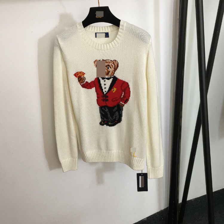 Polo Ralph Lauren new stylish teddy bear jacquard pattern pullover wool knit sweater-5410