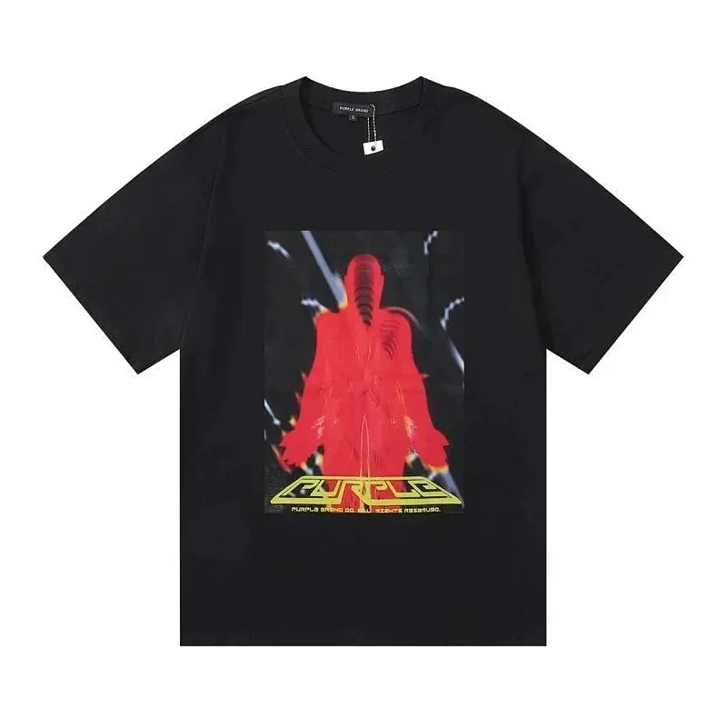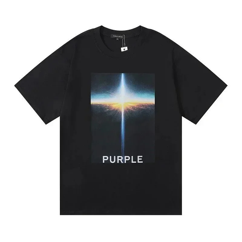 Home > PURPLE Letter pattern printed short-sleeved T-shirt for men and women American high street half-sleeve-1886