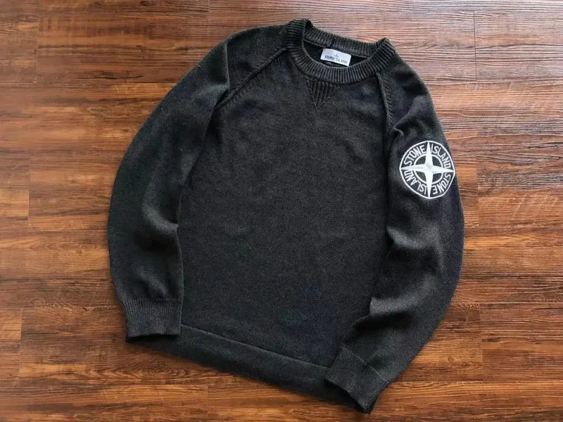Stone Island Round Neck Badge Sweater Slim Knit Top-2119