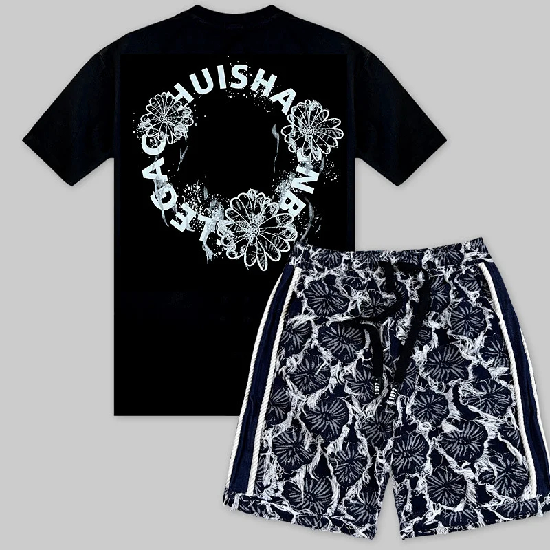 Home > Summer Ice Silk Flower Shirt Short Sleeve Loose Suit (40 styles)-2783